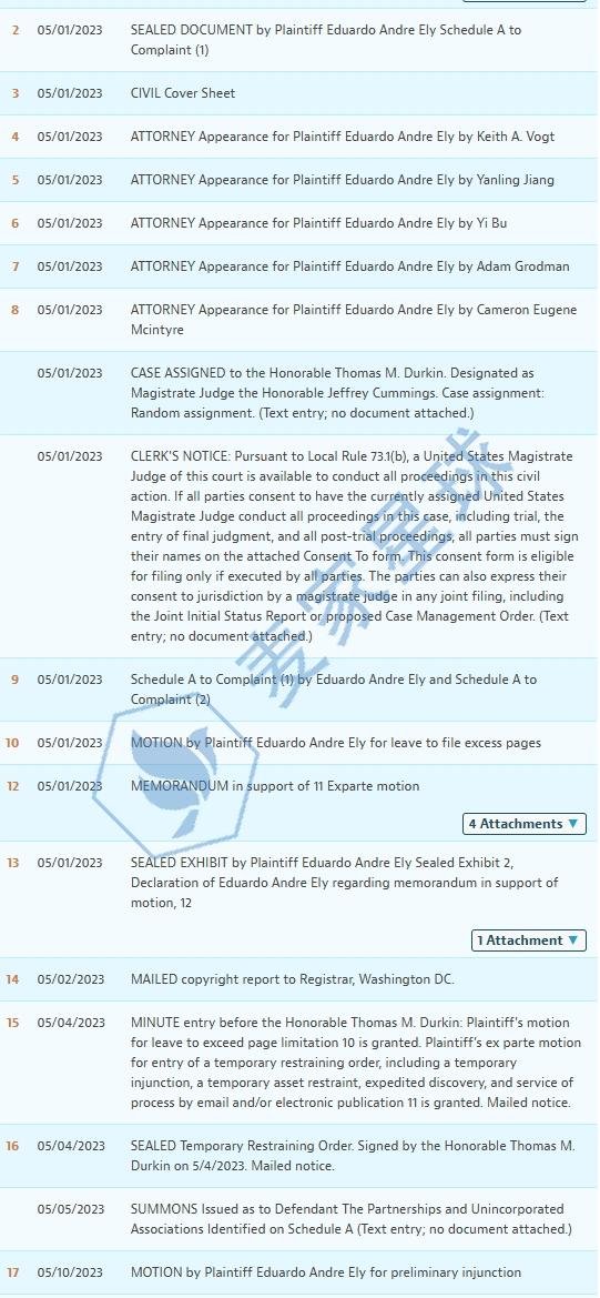 2023年05月01日,Keith作为Eduardo Andre Ely的代理律所,在伊利诺伊州北区法院发起版权维权,案件编号为23-cv-2707。
